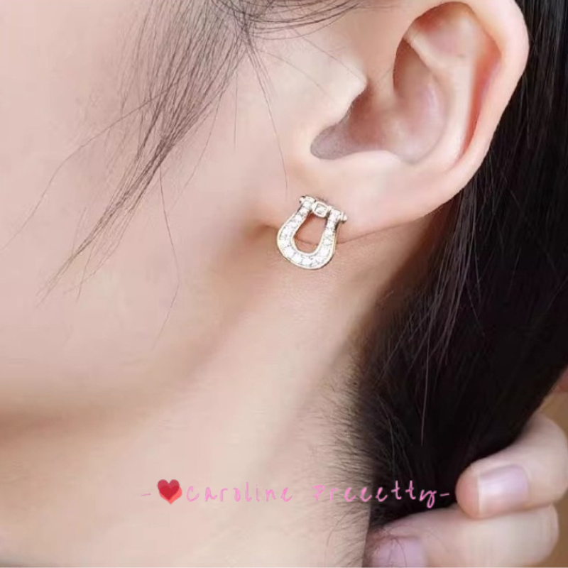 Exquisite horseshoe-shaped stud earrings with diamonds, simple Korean versatile women's fashion earrings, elegant stud earrings