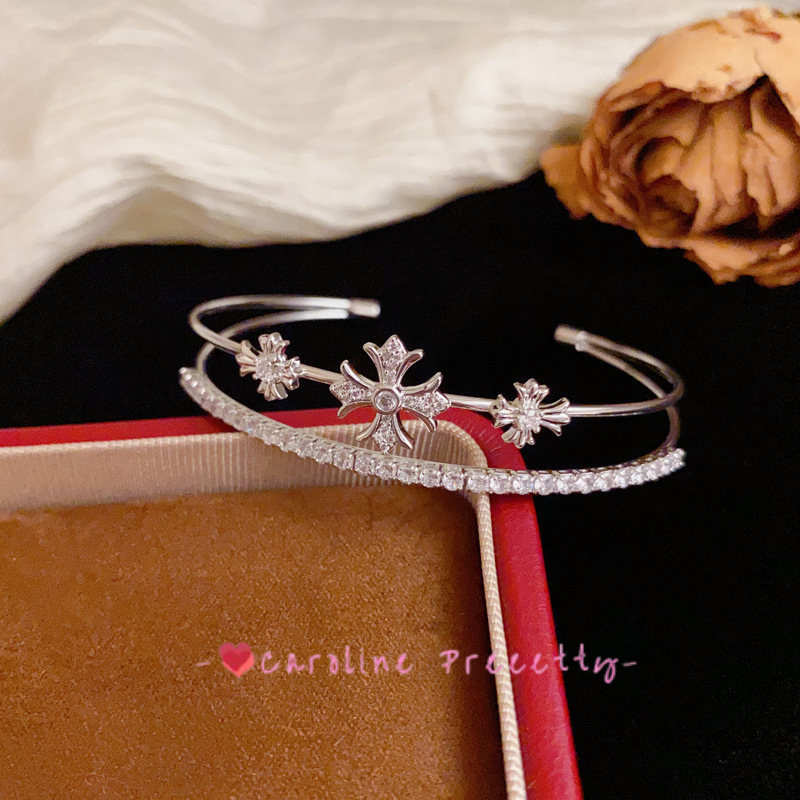 Full diamond cross double-layer open bracelet